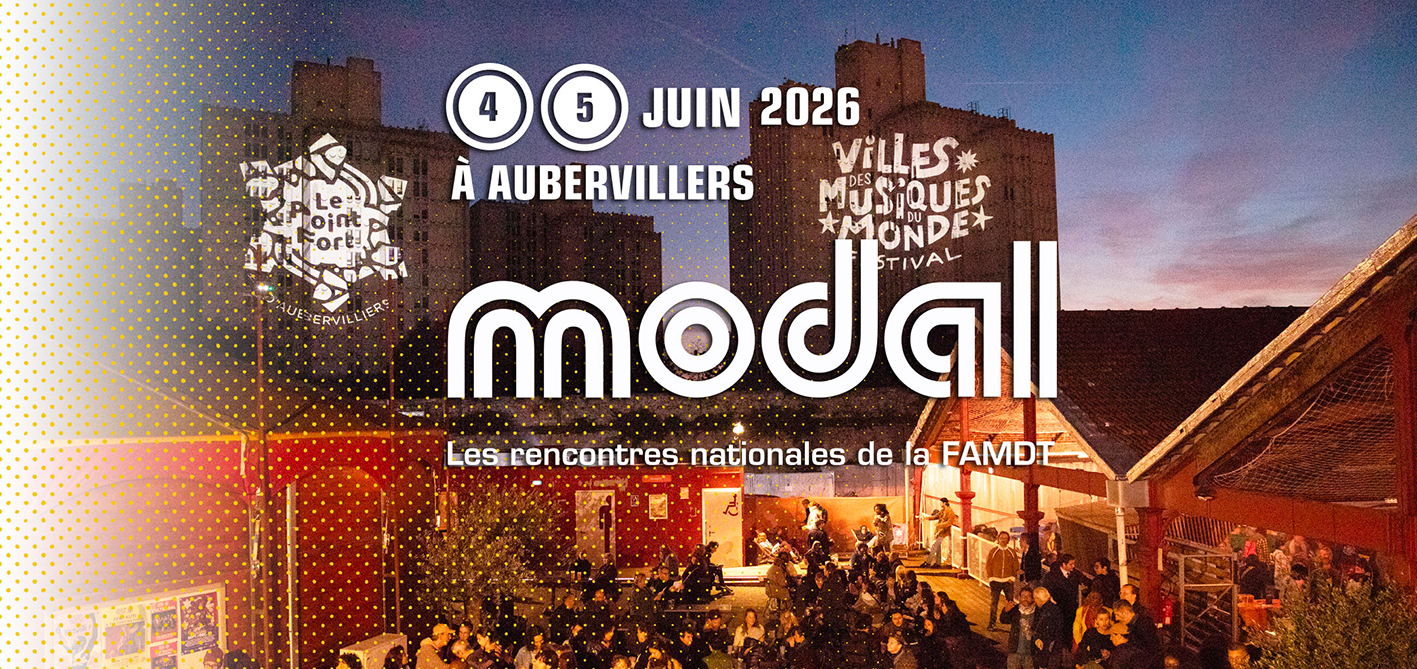 Chaque année depuis 2014, la FAMDT organise les rencontres nationales intitulées « MODAL – Les rencontres ». Ce rendez-vous vise à rassembler les énergies des acteur·rices des musiques, danses traditionnelles / monde. Il offre un temps de réflexion prospective et de construction sur la dimension artistique et culturelle, ainsi que sur la place des artistes, projets, équipes, citoyen·nes, dans une société en mouvement. MODAL est gratuit et ouvert à tou·tes, que vous soyez adhérent·es ou non de la FAMDT..